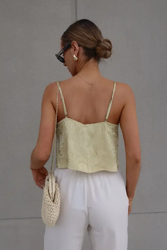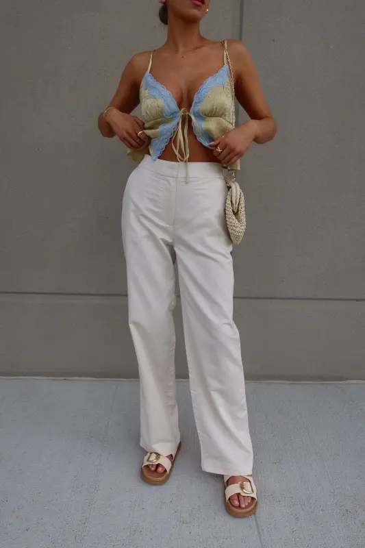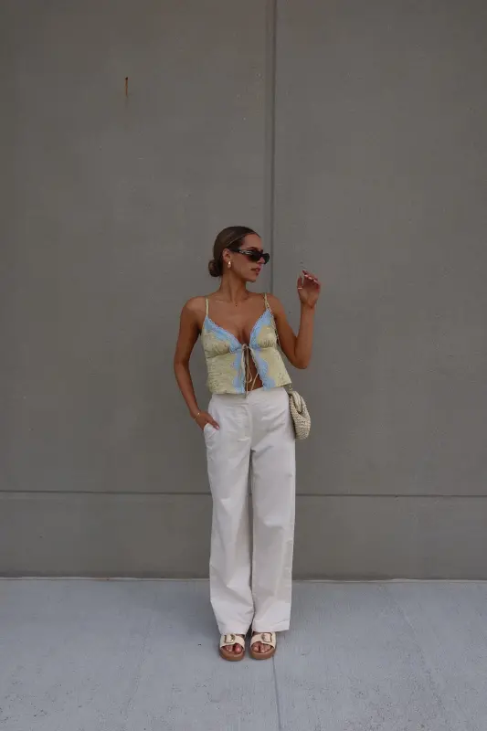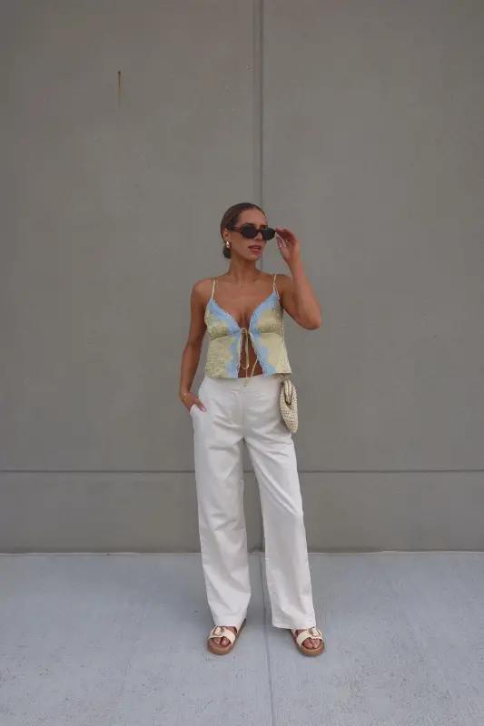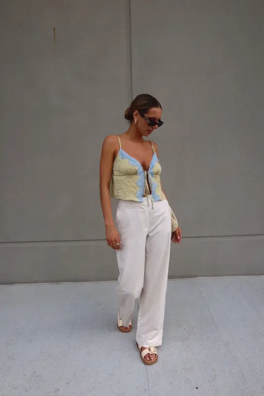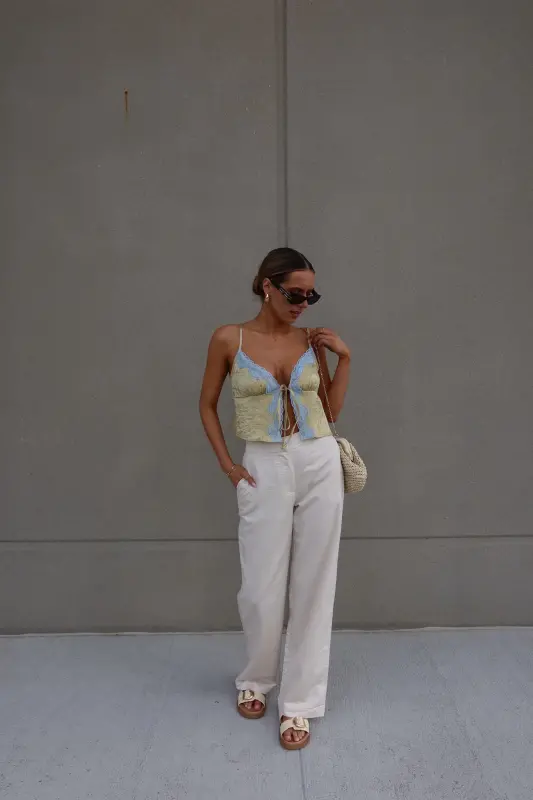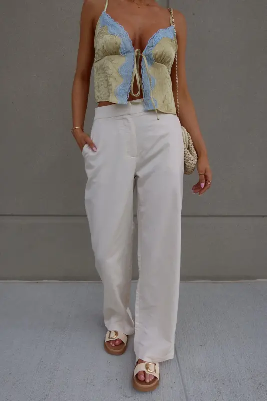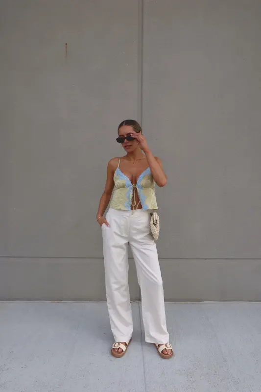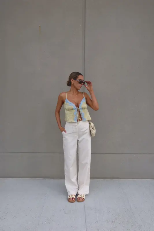 Introducing our stunning Brieanna Lace Trim Tank Top, crafted from textured woven fabric for a luxurious feel. This tank boasts a flattering v-neckline adorned with exquisite color-contrasting lace trim, adding a touch of elegance to any ensemble. Complete with adjustable spaghetti straps and a chic self-tie detail at the center front neckline, this top offers both style and versatility. Its loose bodice ensures comfort while maintaining a fashionable silhouette, and it fits true to size for effortless wearability. Elevate your wardrobe with this sophisticated piece that seamlessly transitions from day to night.