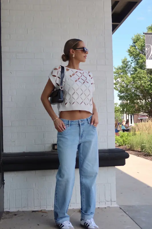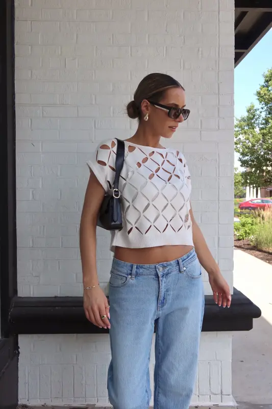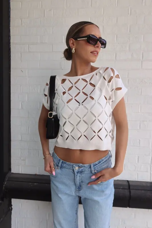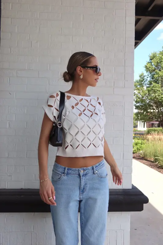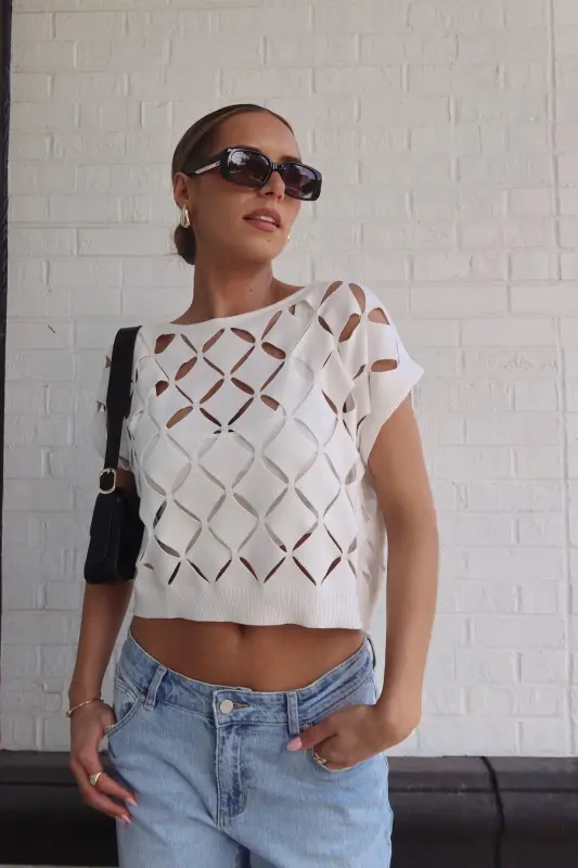 Elevate your wardrobe with the Leela Cut Out Detail Top, a must-have piece featuring a boxy fit and distinctive cut-out designs for a unique touch. The relaxed silhouette ensures comfort without compromising style, while rib trim accents and a high, wide neckline add sophistication. Embrace this one-of-a-kind top to make a stylish statement.